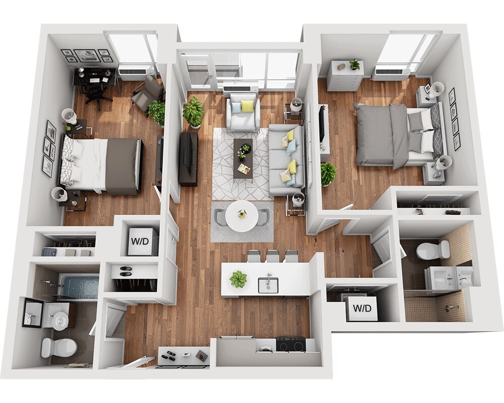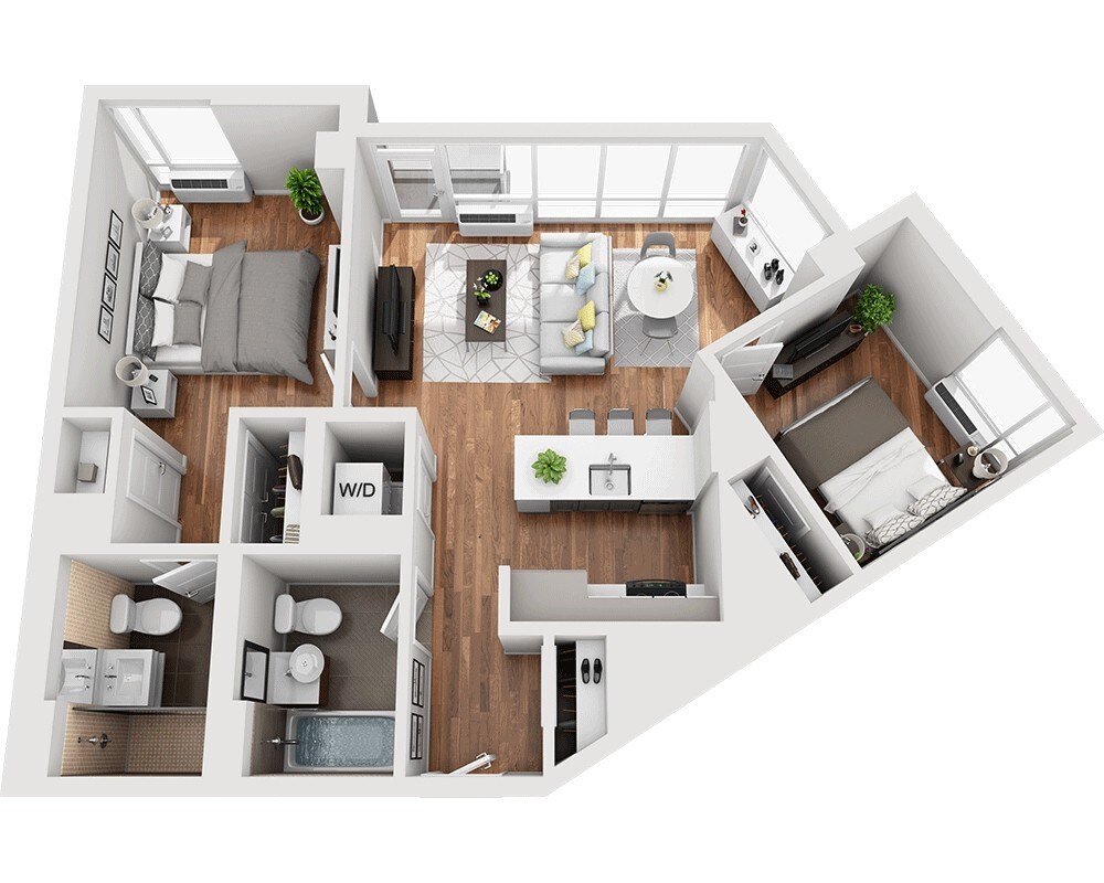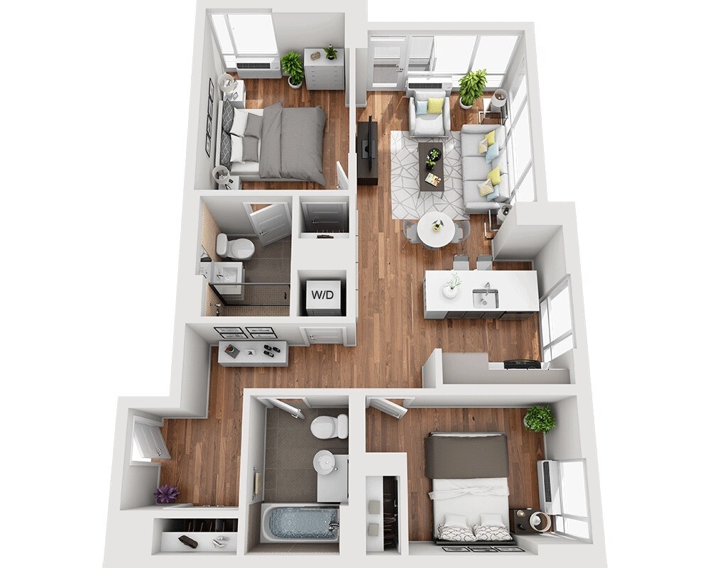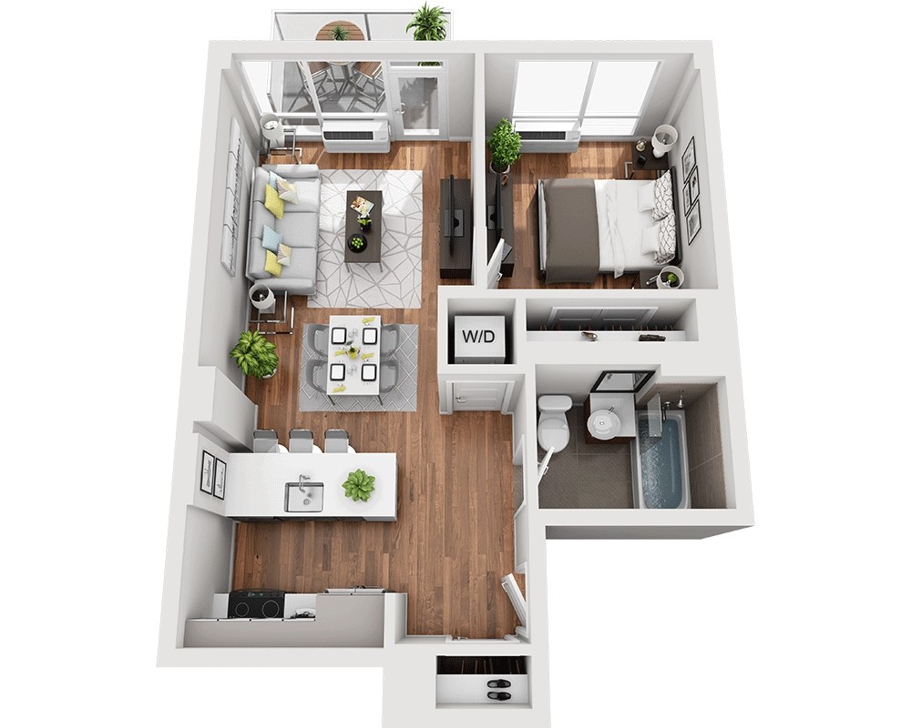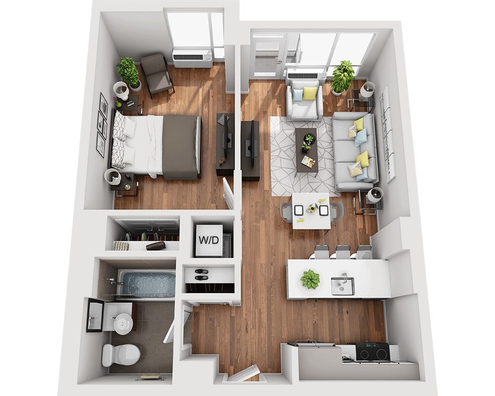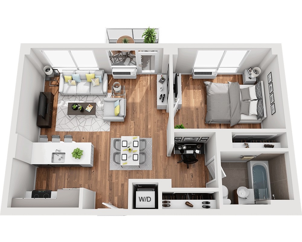 1 Bed, 1 Bath, 557 sq ftModel Gallery