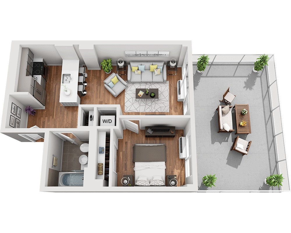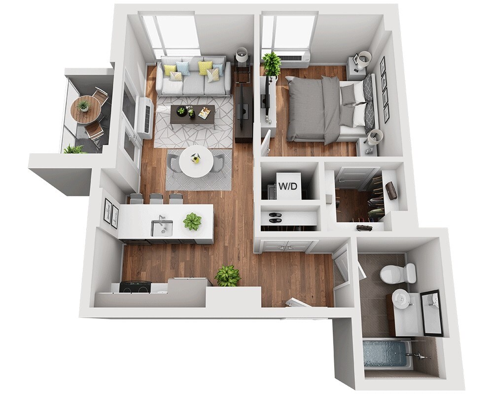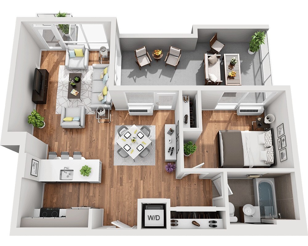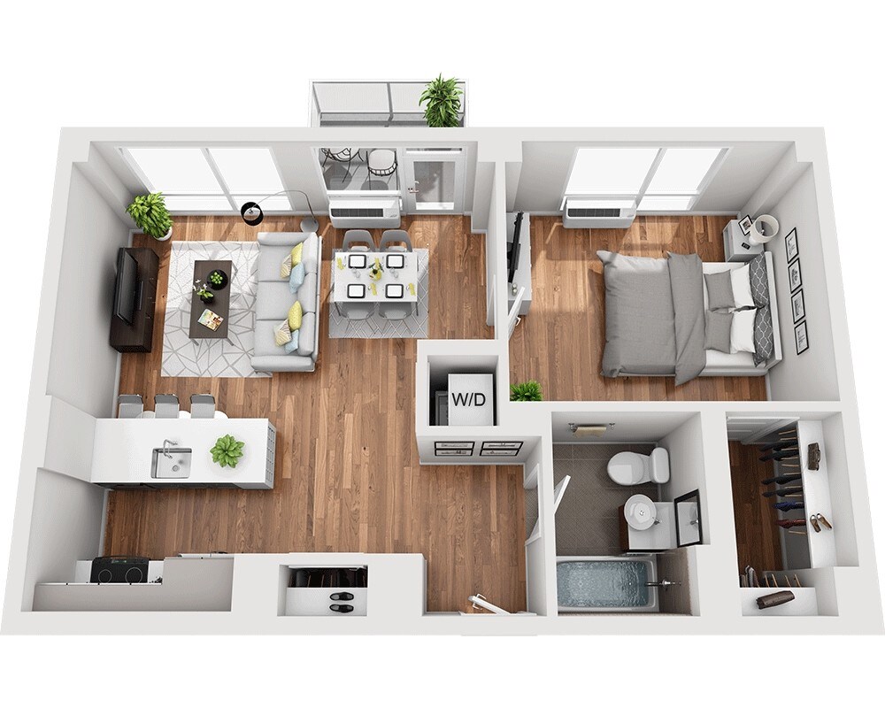 1 Bed, 1 Bath, 631 sq ftModel Gallery