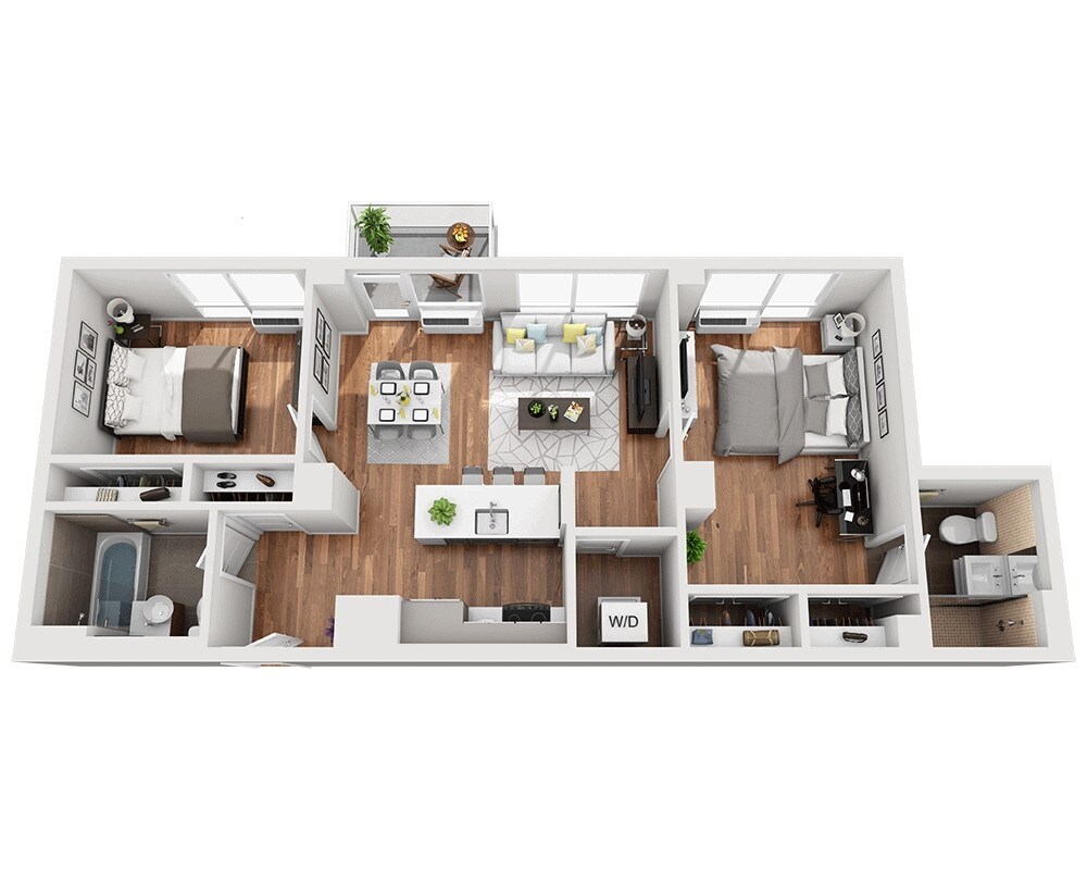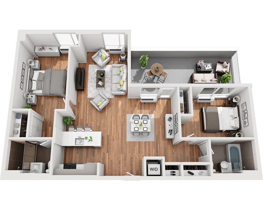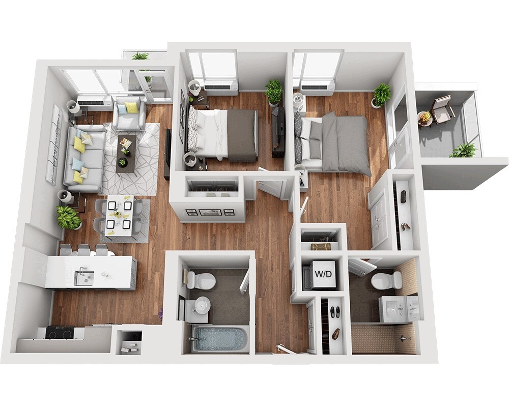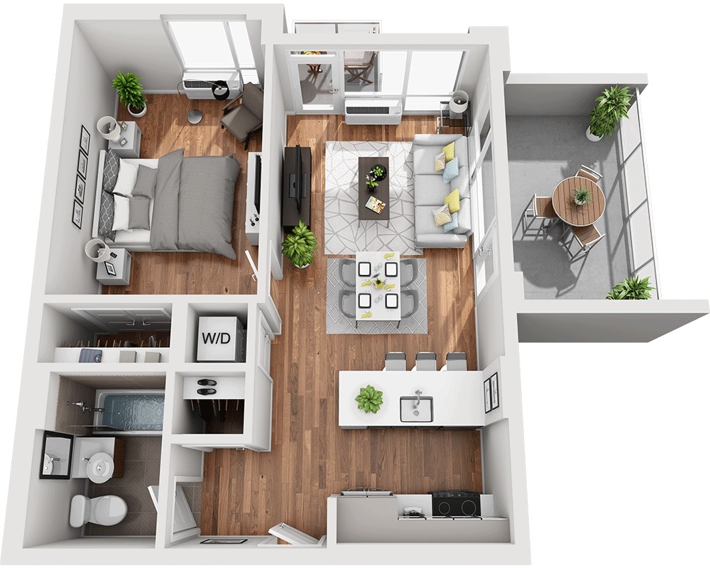 1 Bed, 1 Bath, 631 sq ftModel Gallery