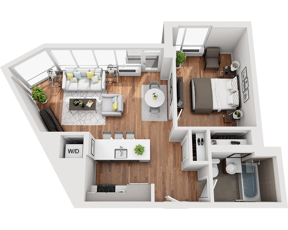 1 Bed, 1 Bath, 586 sq ftModel Gallery