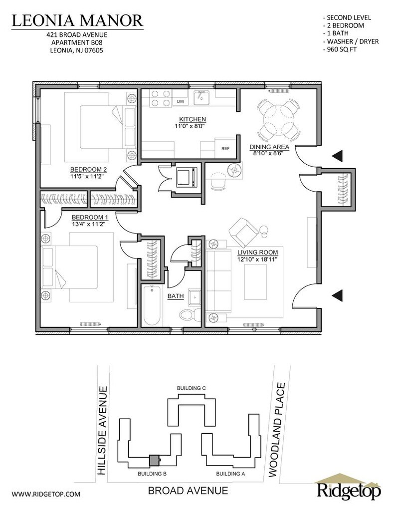 Leonia Manor: In-Unit Washer & Dryer is located at 405-425 Broad Ave near the Bergen County Waterfront area of Leonia, NJ