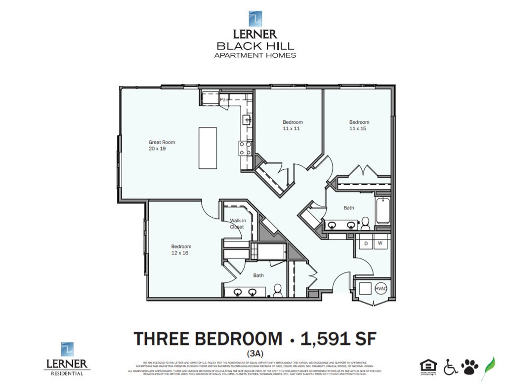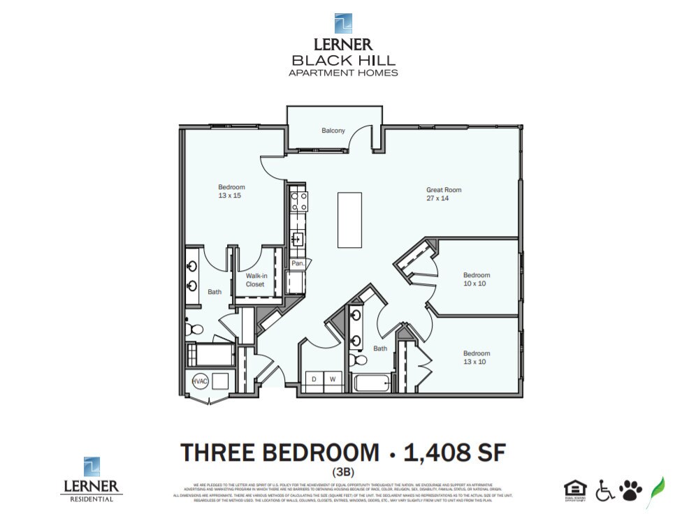 Studio to 3 Bedroom Apartments at Lerner Black Hill currently range from $1,880 to $3,399