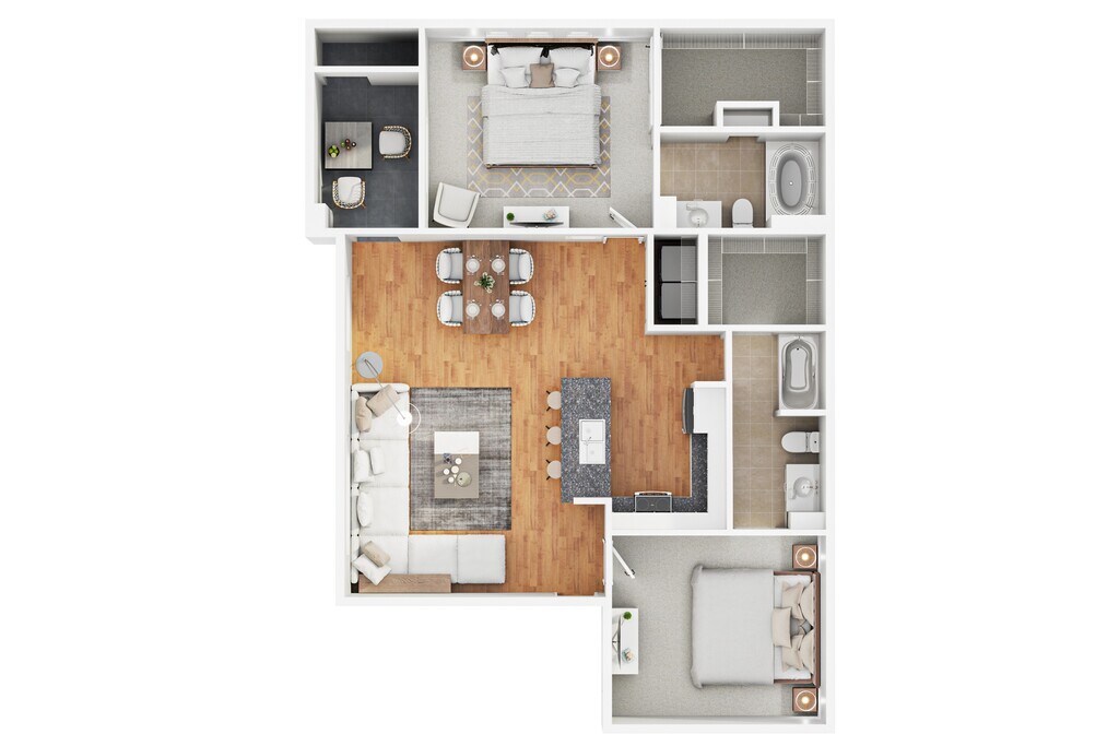 Apartment Model: A3From $1,5161 Bedroom, 1 Bath, 761 sq ftAvailable NowFloorplansPhotos![]()