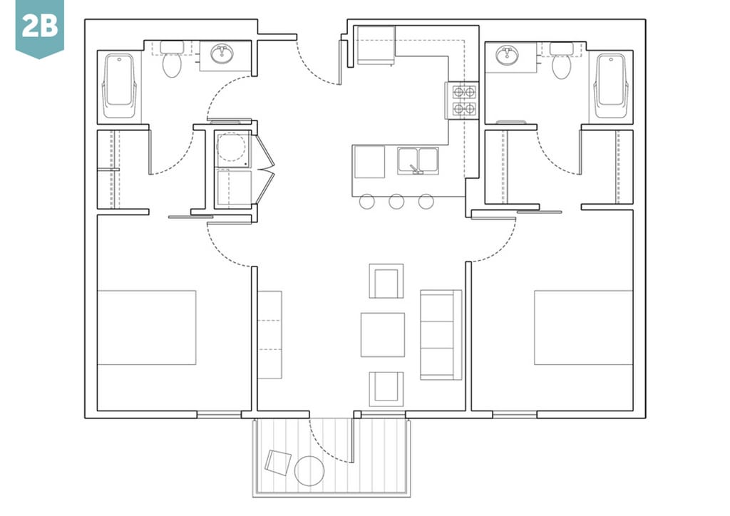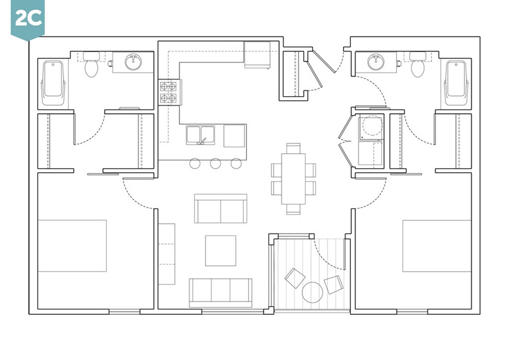 2B - Image 1 Apartment Unit: 142Apartment Model: 2B$1,5502 Bedroom, 2 Bath, 950 sq ftAvailable NowFloorplan 2C