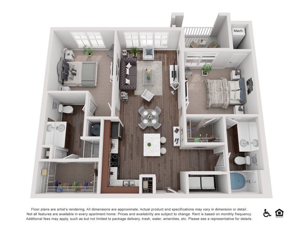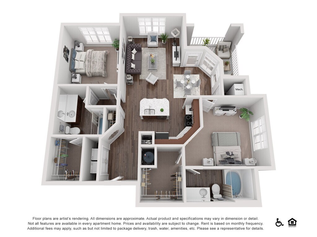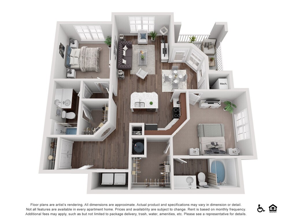 A2 - Image 1 Floor plans are artist's rendering. All dimensions are approximate. Actual product and specifications may vary in dimension or detail. Not all features are available in every rental home. Prices and availability are subject to change. Base rent is based on monthly frequency. Additional fees may apply, such as but not limited to package delivery, trash, water, amenities, etc. Deposits vary. Please see a representative for details.