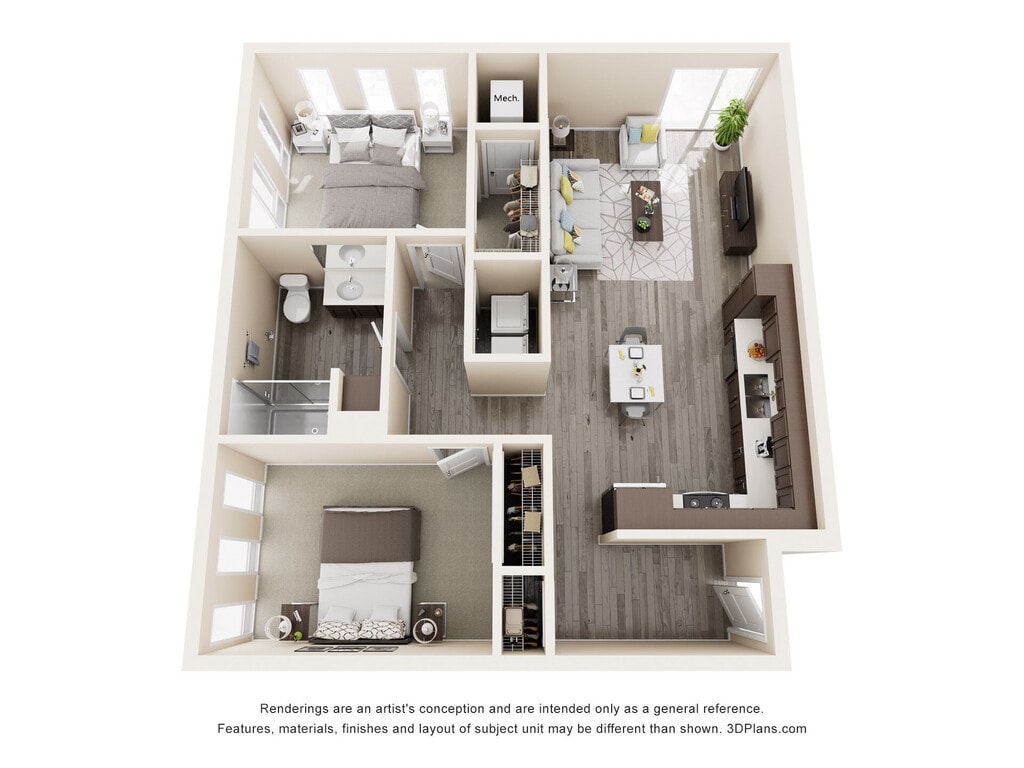 2 Beds, 1 Bath, 877-902 sq ftModel Gallery