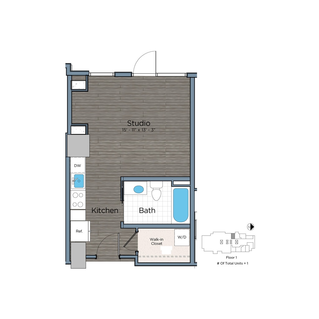 Studio, 1 Bath, 396-406 sq ftAvailable NowModel Gallery