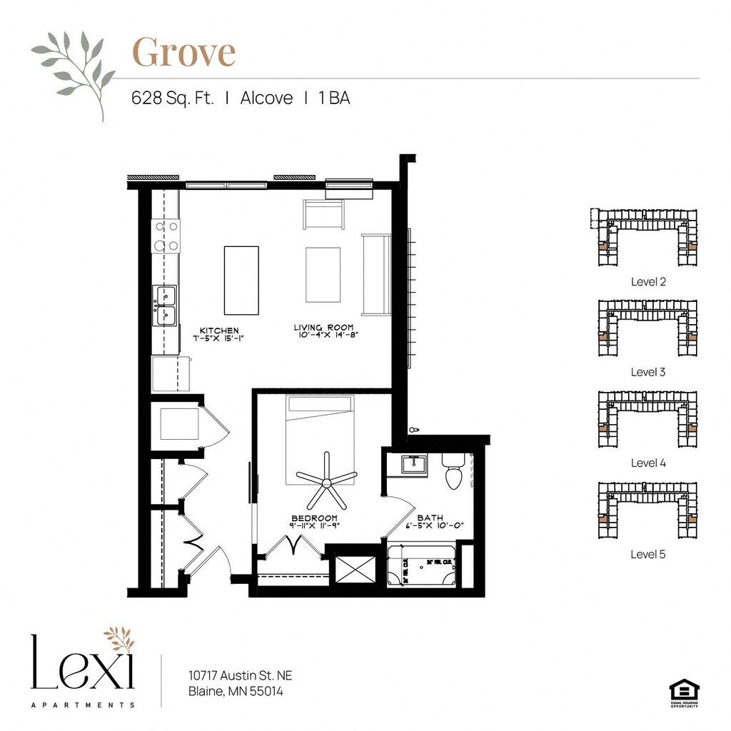 Availability Date Unit Sq Ft Call for Availability Grove 628 sq ft * Price shown is Total Monthly Price including feesModel Amenities and Features