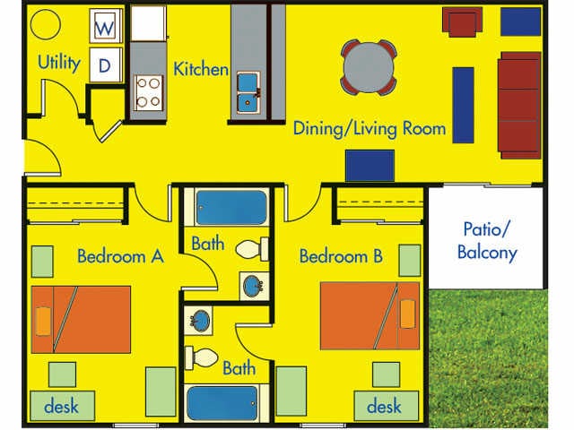 Apartment Model: 2-2p$8952 Bedroom, 2 Bath, 900 sq ftAvailable Now![]()