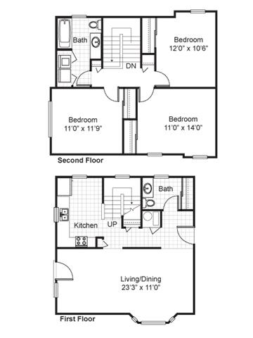 Apartment Model: 3 Bedroom Townhouse3 Bedroom, 1 Bath, 1248 sq ftUnavailable![]()
