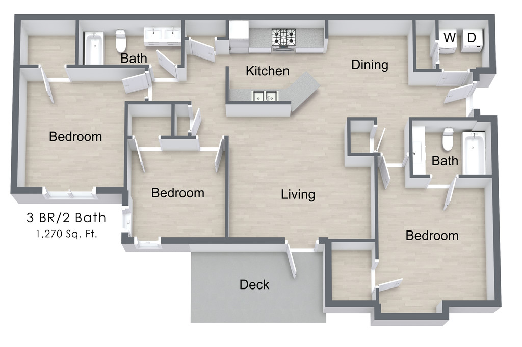 3 Beds, 2 Baths, 1270 sq ftAvailable NowModel Gallery