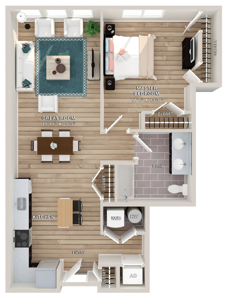 Apartment Model: Agnes$2,3971 Bedroom, 1 Bath, 810 sq ftUnavailableFloor plans are artist's rendering. All dimensions are approximate. Actual product and specifications may vary in dimension or detail. Not all features are available in every rental home. Prices and availability are subject to change. Base rent is based on monthly frequency. Additional fees may apply, such as but not limited to package delivery, trash, water, amenities, etc. Deposits vary. Please see a representative for details.