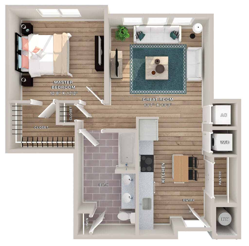 Studio, 1 Bath, 670 sq ftAvailable March 29, 2026Model Gallery