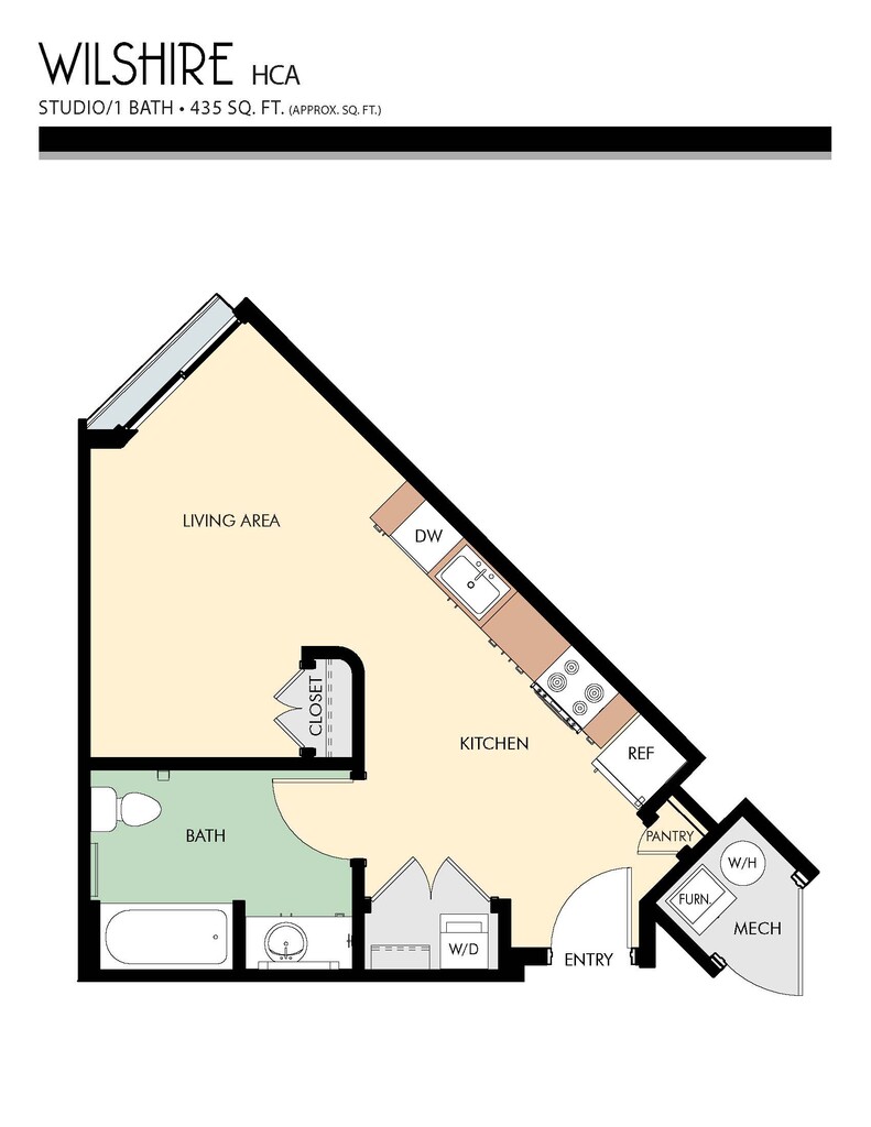 Apartment Model: Wilshire HCAFrom $1,182Studio, 1 Bath, 435 sq ftAvailable December 8, 2025![]()