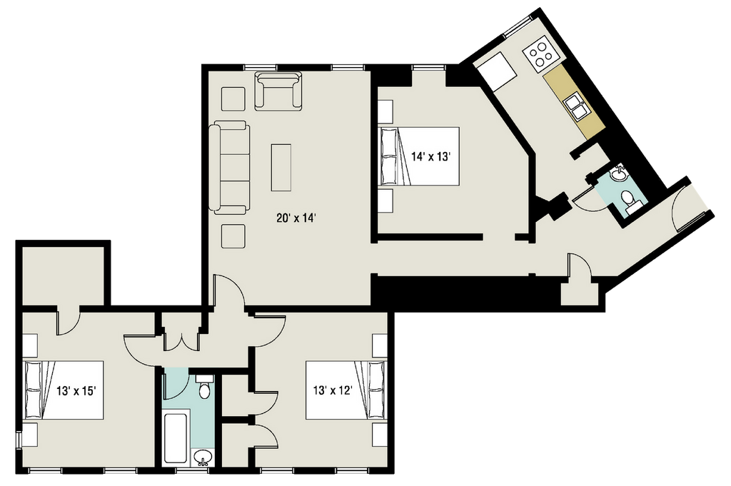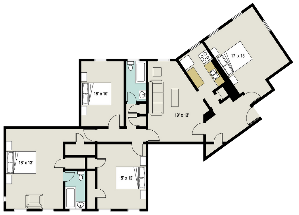 Lease terms are approximately 11.5 months, coinciding with the University's Academic Calendar. Residents are charged a Total Contractual Rent Amount for the period. The lease agreement will reflect the Total Contractual Rent Amount divided into 12 equal installments | Aug. 1 - Jul 1. Advertised Rents are per installment, and there are 12 installments to be paid over the term of the contract. Installments are not prorated. Secure your home today and lock in Pre-Leasing Rates. UTILITIES & INTERNET INCLUDED Disclaimer: Floor plans are artist’s rendering and specifications may vary in dimension or detail. Advertised prices and availability are subject to change and/or are subject to market rate pricing.