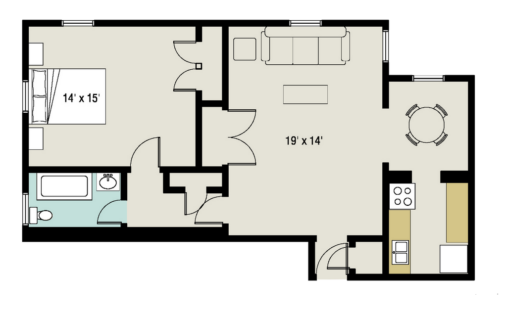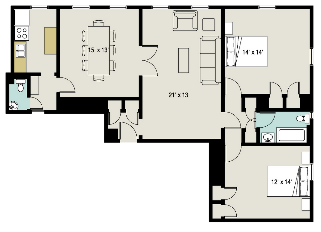 2 Beds, 1 Bath, 550 sq ftPlus FeesAvailable Aug 16Model Gallery