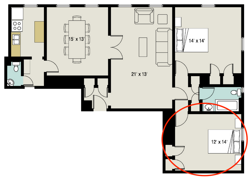 2 Beds, 1 Bath, 1100 sq ftPlus FeesAvailable Aug 16, 2027Largest 2 BedroomThis is the largest 2 Bedroom at this PropertyModel Gallery
