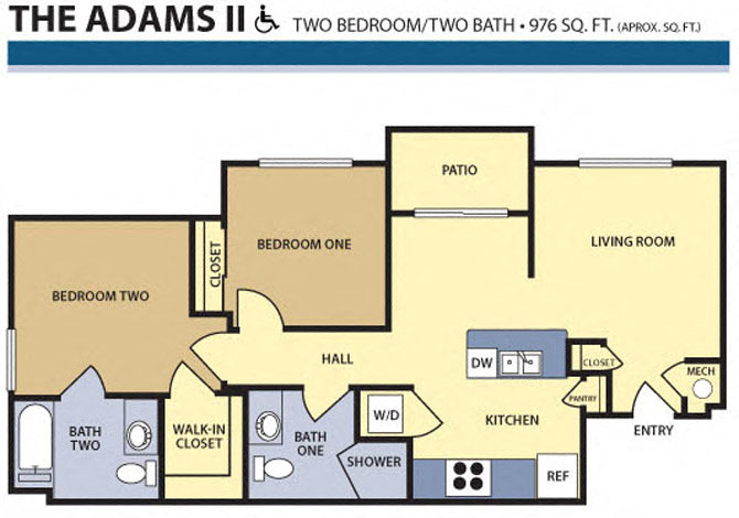 Apartment Model: The Adams HandicapCall For Rates2 Bedroom, 2 Bath, 920 sq ftUnavailable![]()