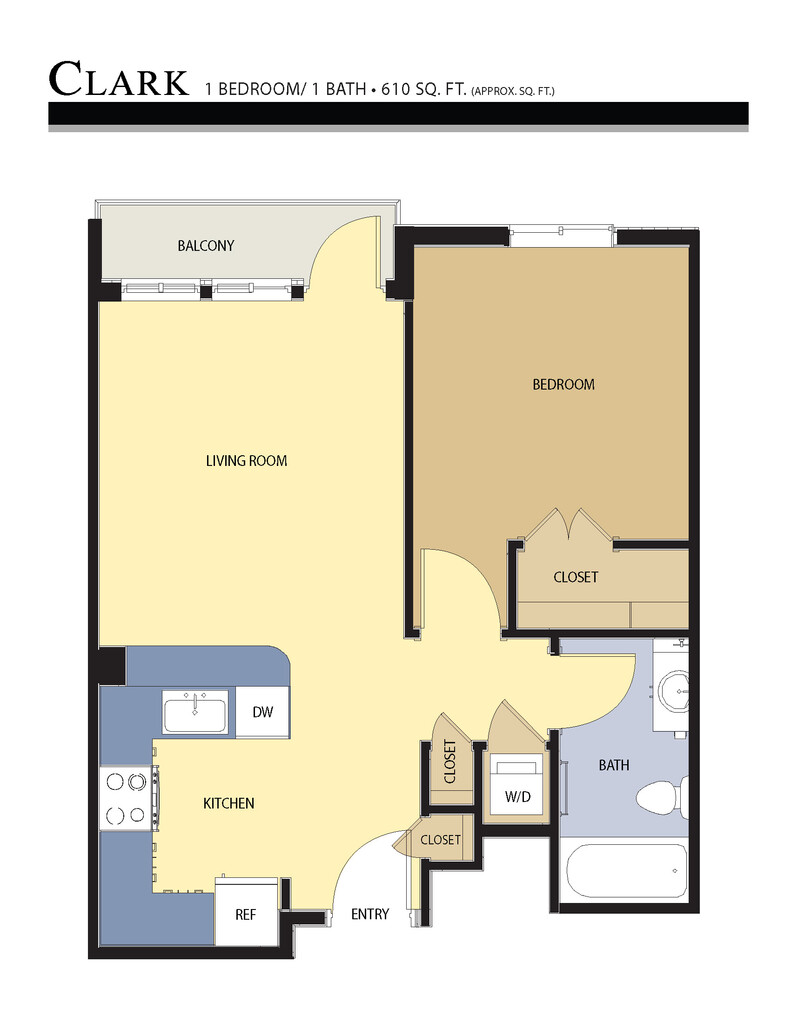 Clark - Floorplan 1 Apartment Unit: 4110Apartment Model: Clark$1,4991 Bedroom, 1 Bath, 610 sq ftAvailable NowApartment Unit: 3110Apartment Model: Clark$1,4991 Bedroom, 1 Bath, 610 sq ftAvailable NowStark