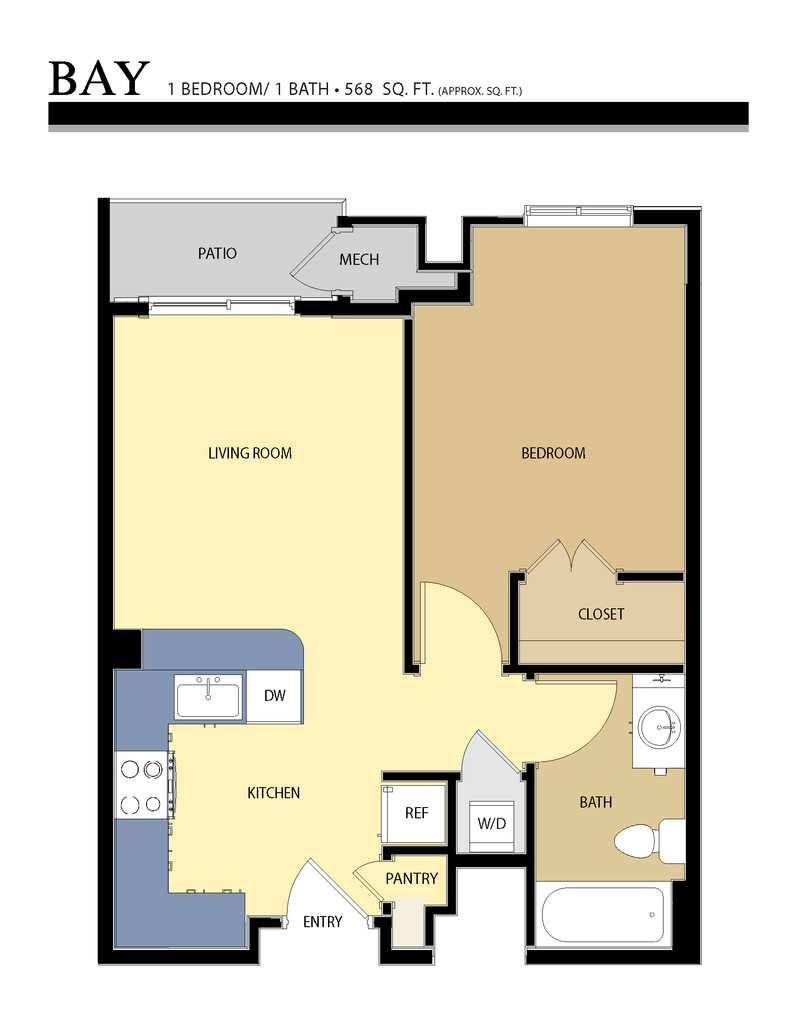 Apartment Model: BayFrom $1,4491 Bedroom, 1 Bath, 568 sq ftAvailable Now![]()