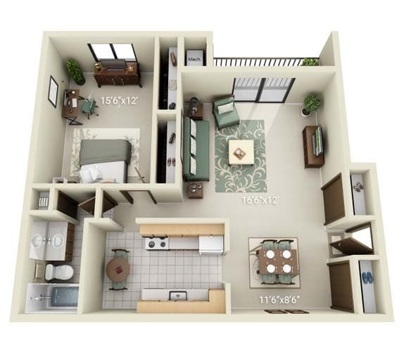 Apartment Model: A1From $1,4351 Bedroom, 1 Bath, 840 sq ftUnavailableA1 - Floorplan 1 2 Bedrooms