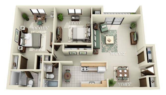 3 Beds, 2 Baths, 1350 sq ftModel Gallery