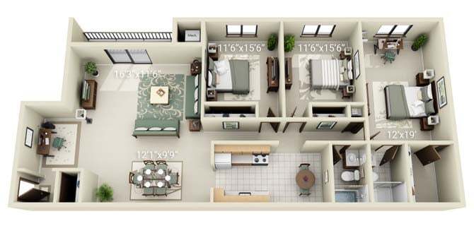 Apartment Model: C1From $1,8403 Bedroom, 2 Bath, 1350 sq ftUnavailableC1 - Floorplan 1