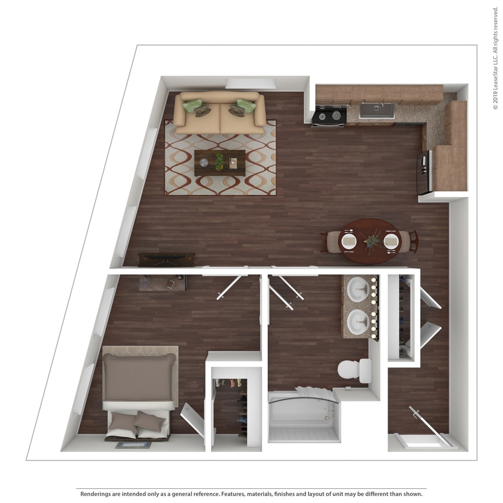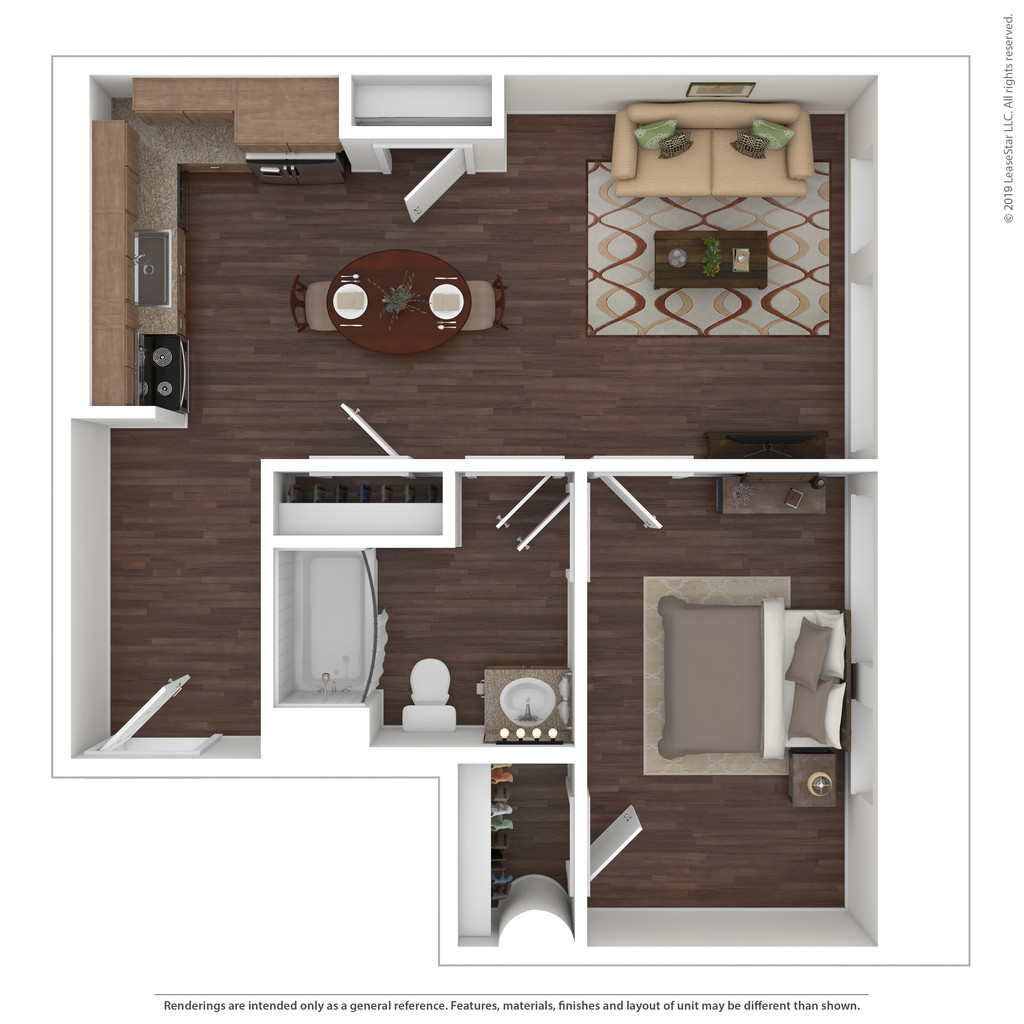 1 Bed, 1 Bath, 738-1028 sq ftLargest 1 BedroomThis is the largest 1 Bedroom at this PropertyModel Gallery