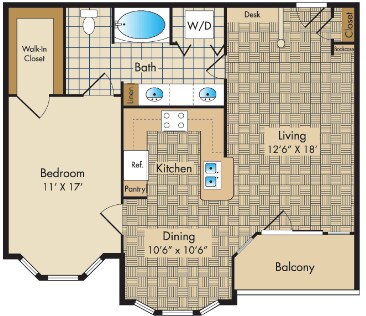 Apartment Model: As II$1,225Studio, 1 Bath, 645 sq ftAvailable Now![]()