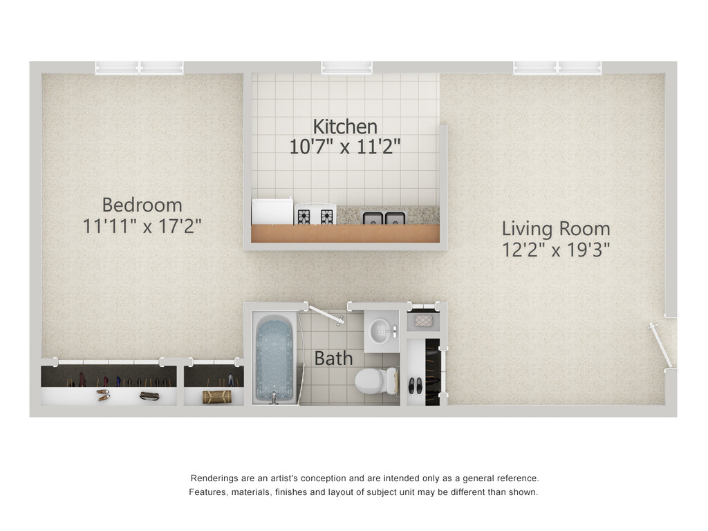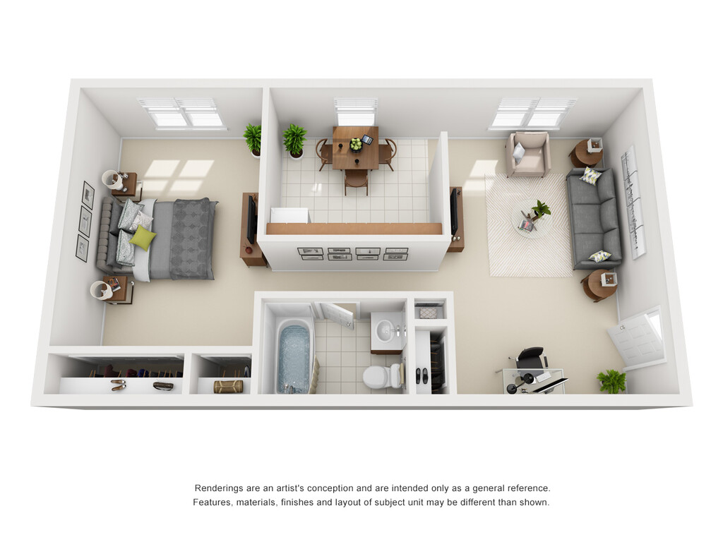 2 Beds, 1 Bath, 750 sq ftModel Gallery