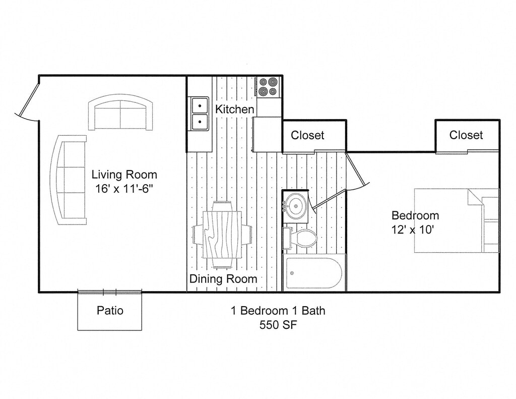 1 Bed, 1 Bath, 550 sq ftModel Gallery