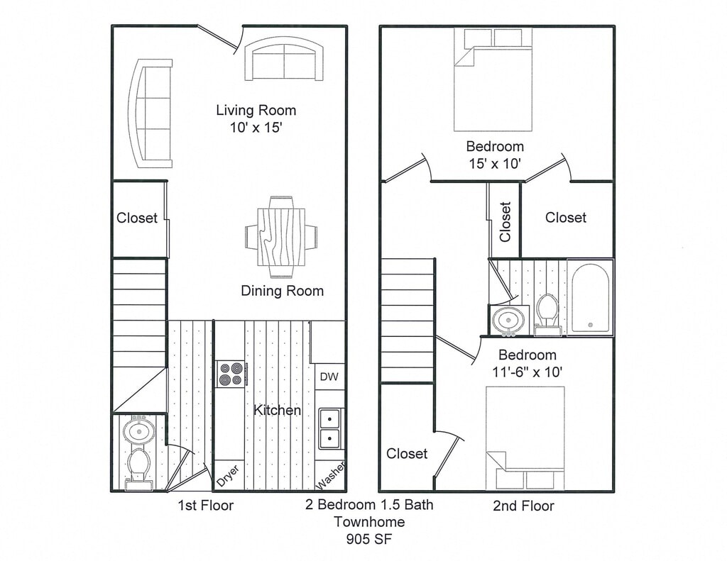 Price Availability Date Unit Sq Ft $1,025 Call for Availability 2bdrm/1.5bath/townhome 905 sq ft Model Amenities and Features