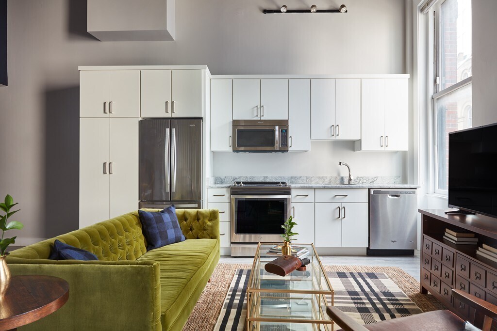 FULLY FURNISHED and UNDERGRADUATE STUDENTS WELCOME. All units at Liberty Tree offer true loft living in the bustling Midtown neighborhood. Custom built kitchens, stainless refrigerators, dishwashers, stoves, and microwaves. 12' to 15' foot ceilings, custom bathrooms, granite counters, and washer/dryers are offered in all of our apartments.