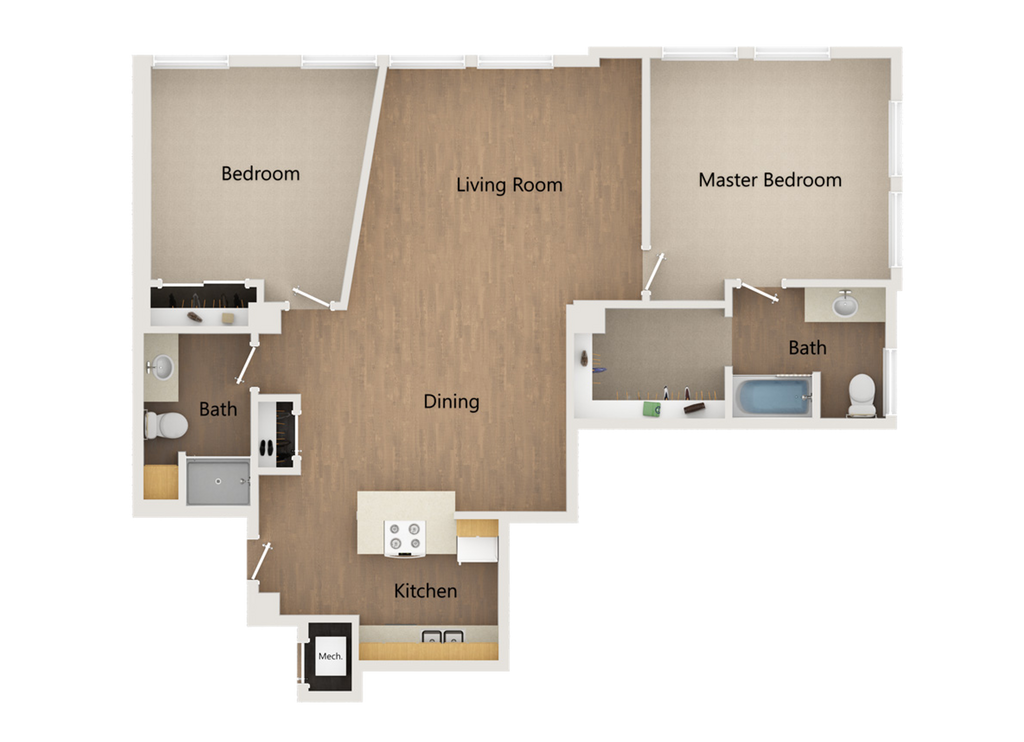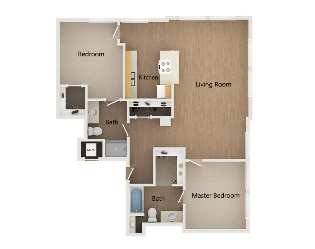 1 Bed, 1 Bath, 690-870 sq ftAvailable NowModel Gallery