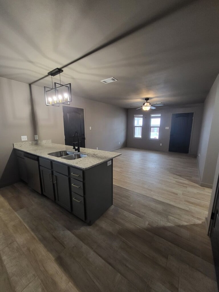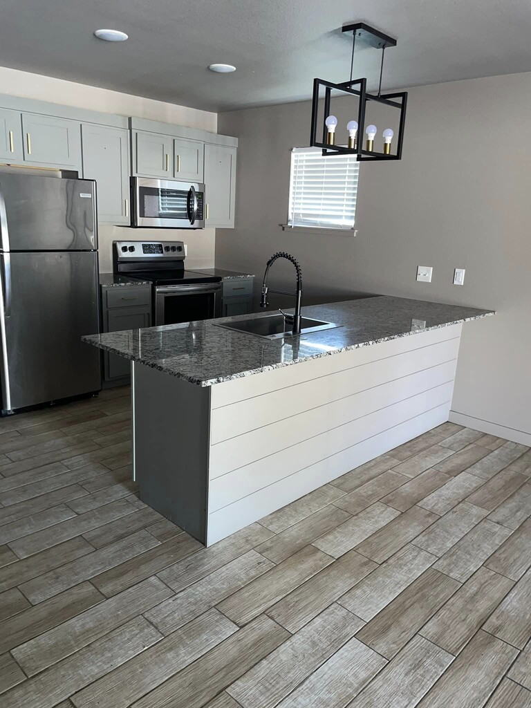 Modern 2 bedroom 2 bath duplex with Hook Ups and Stainless Steel appliances and granite counter.