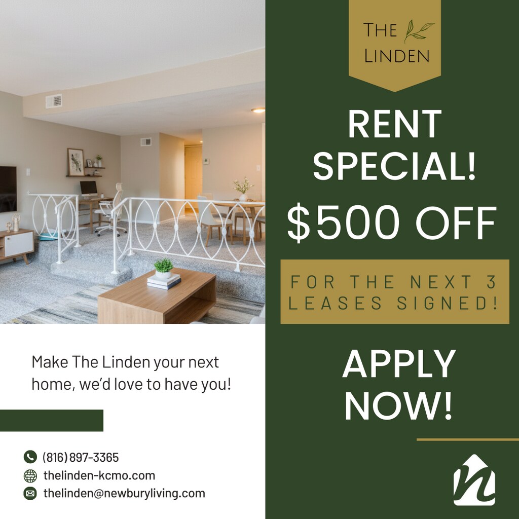 Welcome to The Linden, your new home in the heart of Kansas City, MO! The Linden Apartments offers comfortable, modern living. Choose from spacious one-, two-, and three-bedroom apartment homes designed to fit your lifestyle. Each home features a private patio or balcony—perfect for enjoying fresh air and added living space. Residents enjoy convenient community amenities including an on-site fitness center and on-site laundry facilities, making everyday living easier and more efficient. With thoughtfully designed floor plans, convenient amenities, and a desirable South Kansas City location, The Linden delivers a welcoming place to call home.