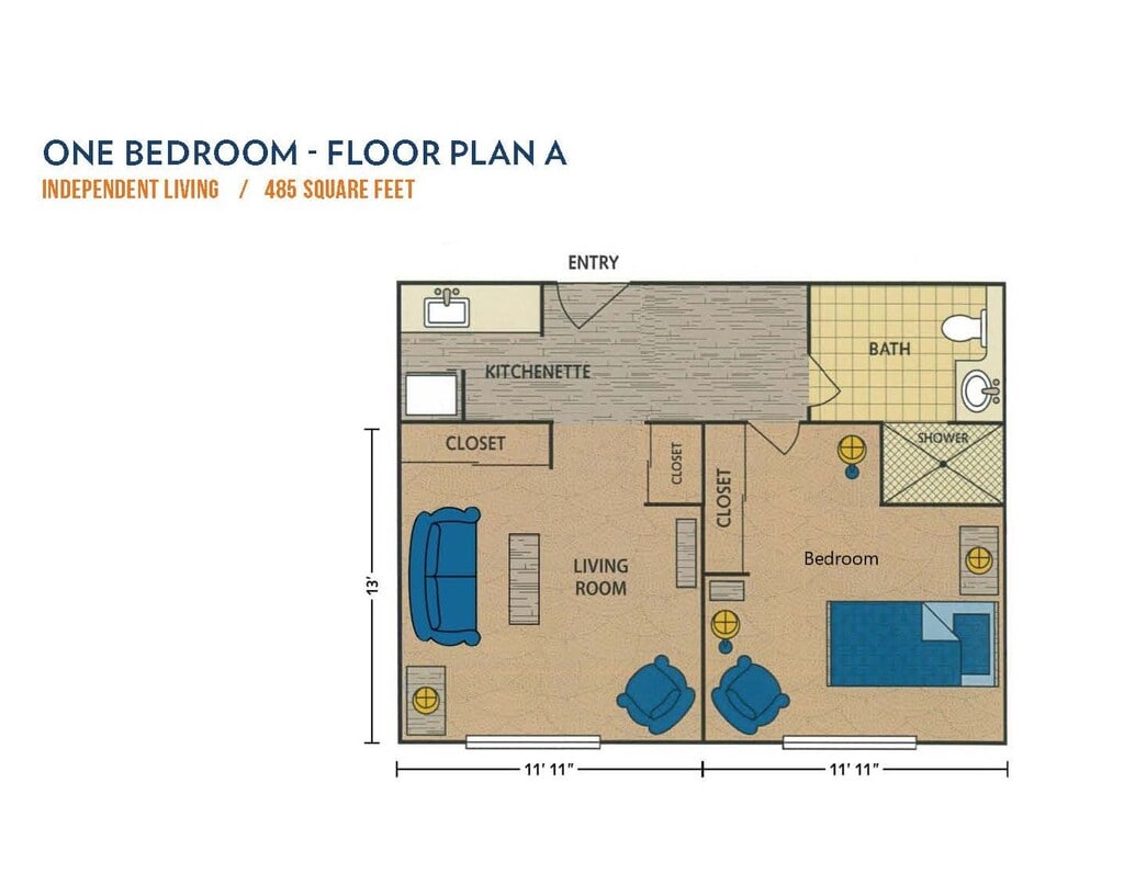 Apartment Living Studio Suite - Floorplan 1 Independent Living Studio Suite