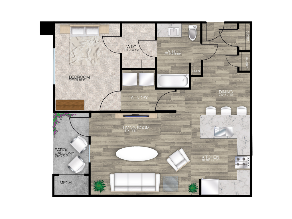1 Bed, 1 Bath, 818 sq ftAvailable NowModel Gallery