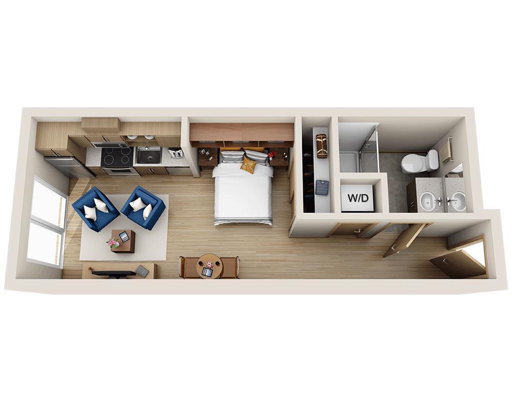 Apartment Model: Studio E1ACall For RatesStudio, 1 Bath, 390 sq ftUnavailableStudio E1A - Floorplan 1 Studio E1B