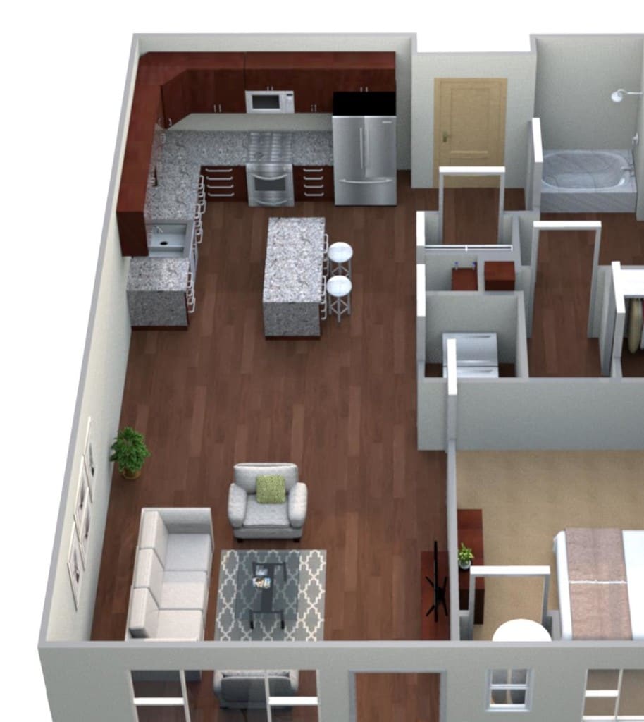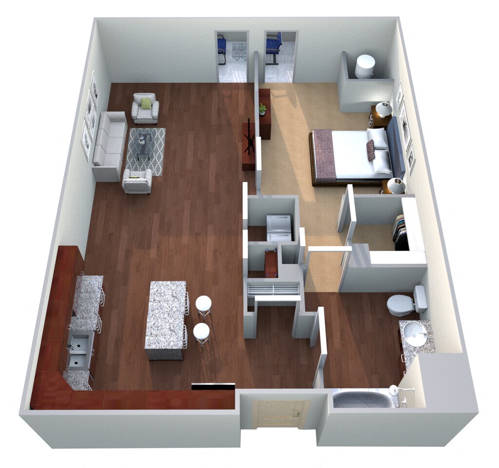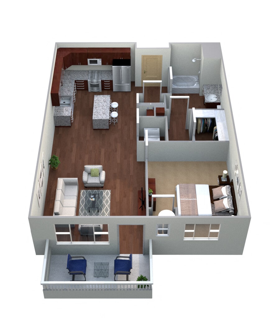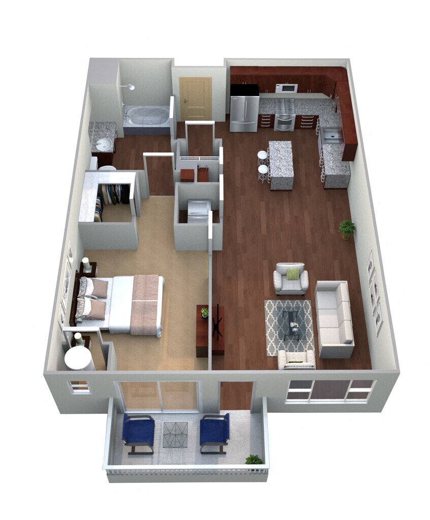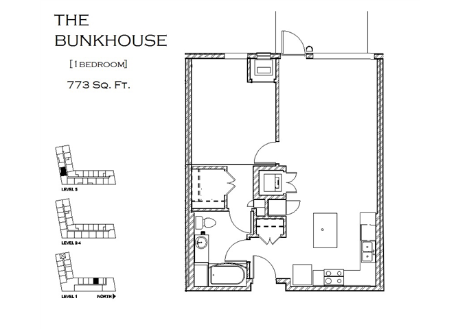The Bunkhouse - Floorplan 3 Apartment Unit: 117Apartment Model: The Bunkhouse$1,5231 Bedroom, 1 Bath, 773 sq ftAvailable NowThe Agate