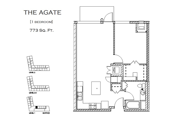 The Agate - Floorplan 3 Apartment Unit: 111Apartment Model: The Agate$1,5231 Bedroom, 1 Bath, 773 sq ftAvailable NowThe Seashell