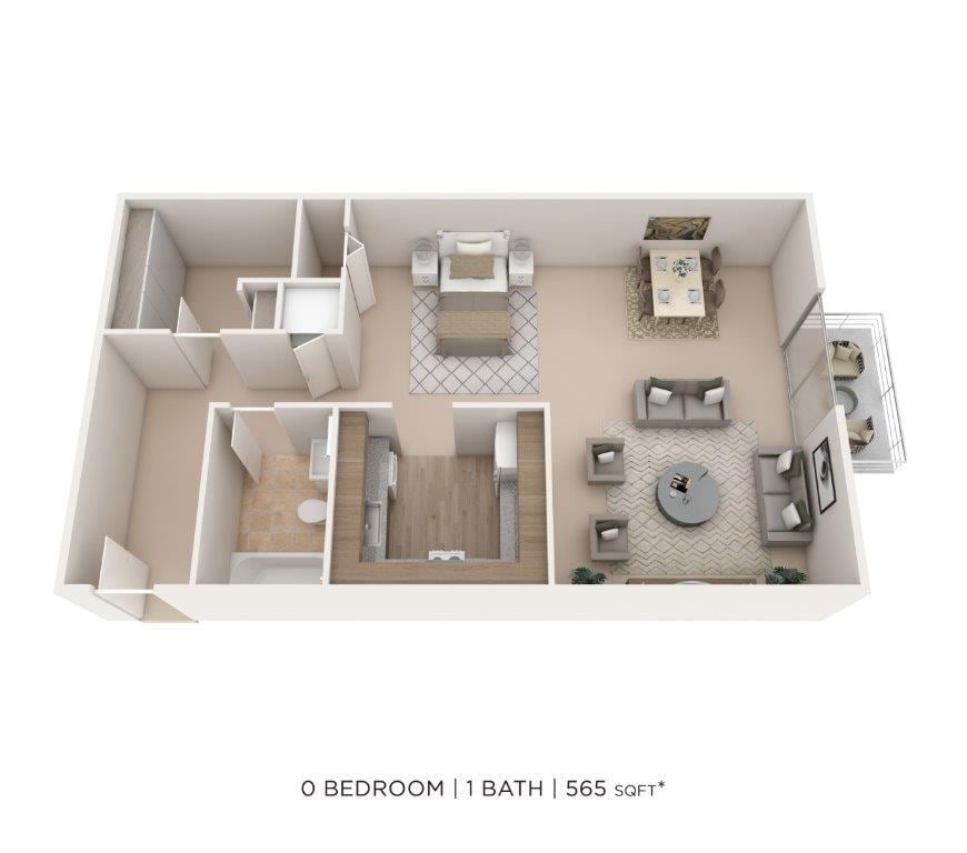 Apartment Model: Studio-565 sqftFrom $1,398Studio, 1 Bath, 565 sq ftAvailable Now![]()