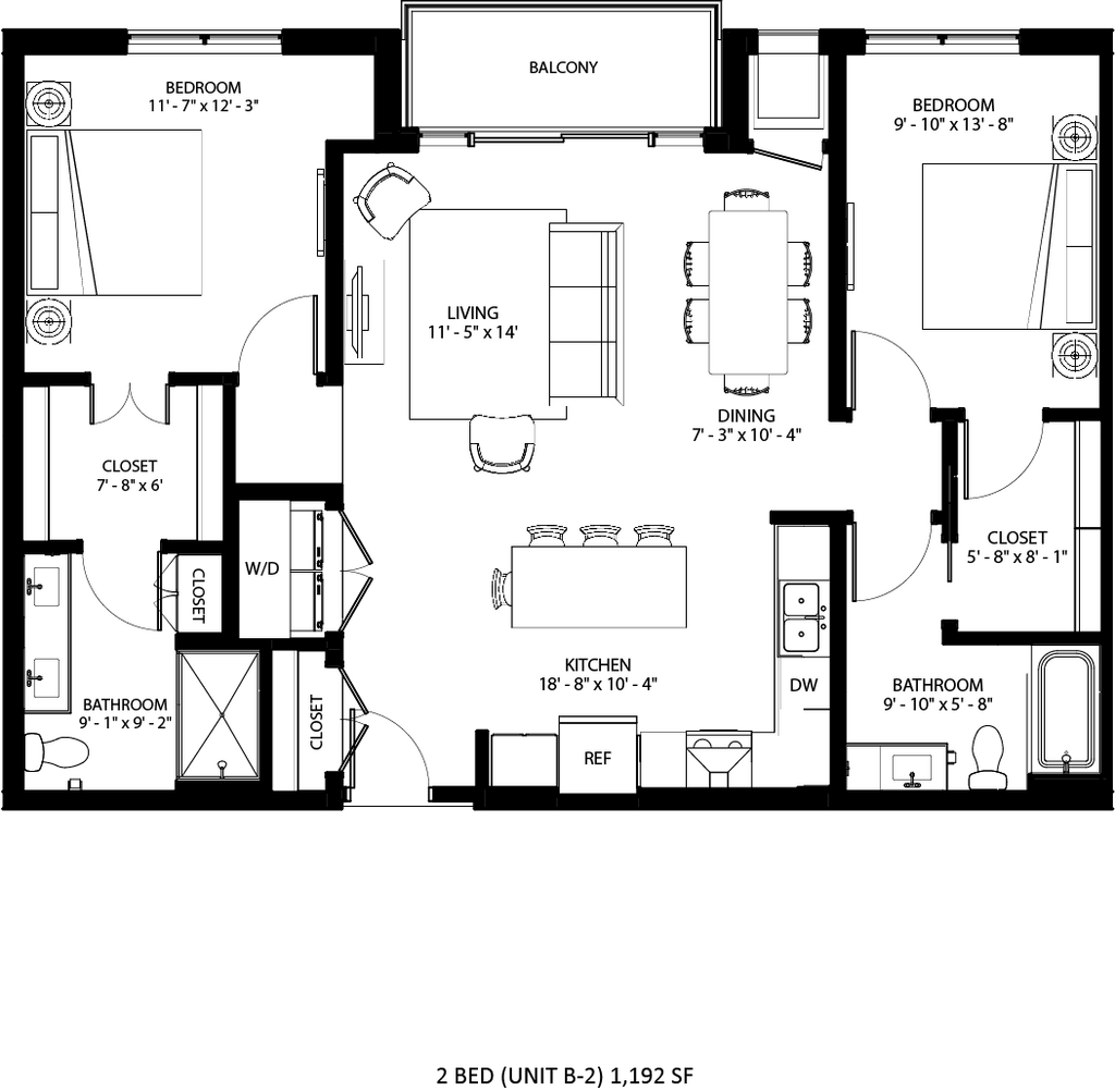 B1 - Floorplan 2 Apartment Unit: 203Apartment Model: B1$1,9501 Bedroom, 1 Bath, 796 sq ftAvailable NowFloorplan B2