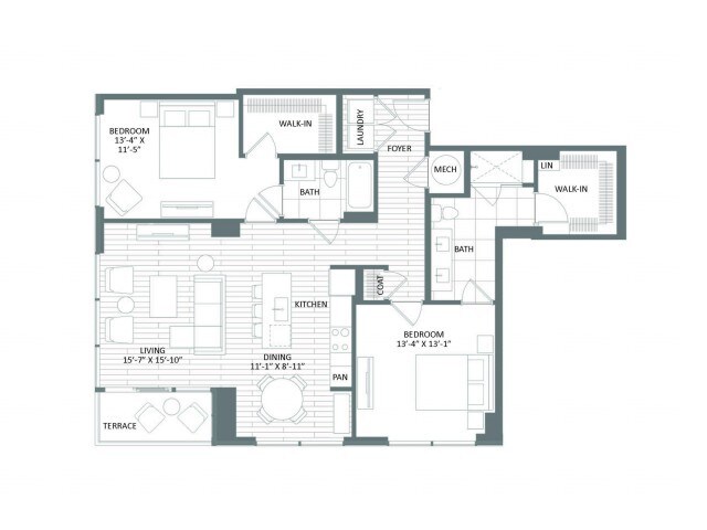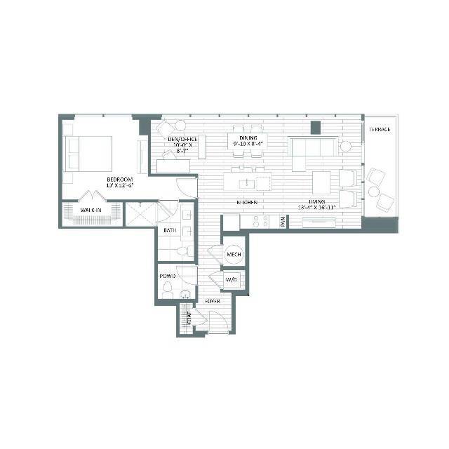 B-4 - Floorplan 1 Apartment Unit: 2BApartment Model: B-4From $2,2571 Bedroom, 1 Bath, 801 sq ftAvailable NowFloorplan D-1