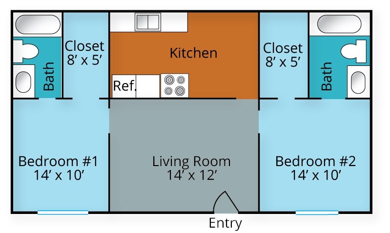 Apartment Model: Two Bedroom, Two Bath2 Bedroom, 2 Bath, 792 sq ftUnavailable![]()