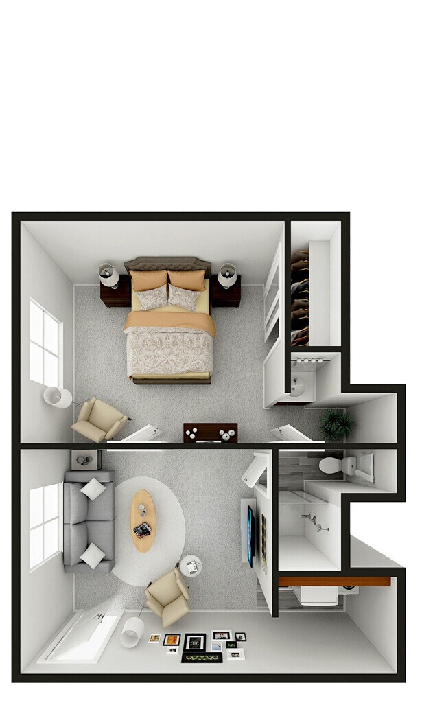 Apartment Model: 1 Bedroom Large$1,1201 Bedroom, 1 Bath, 600 sq ftAvailable July 10, 2026FloorplansPhotos![]()