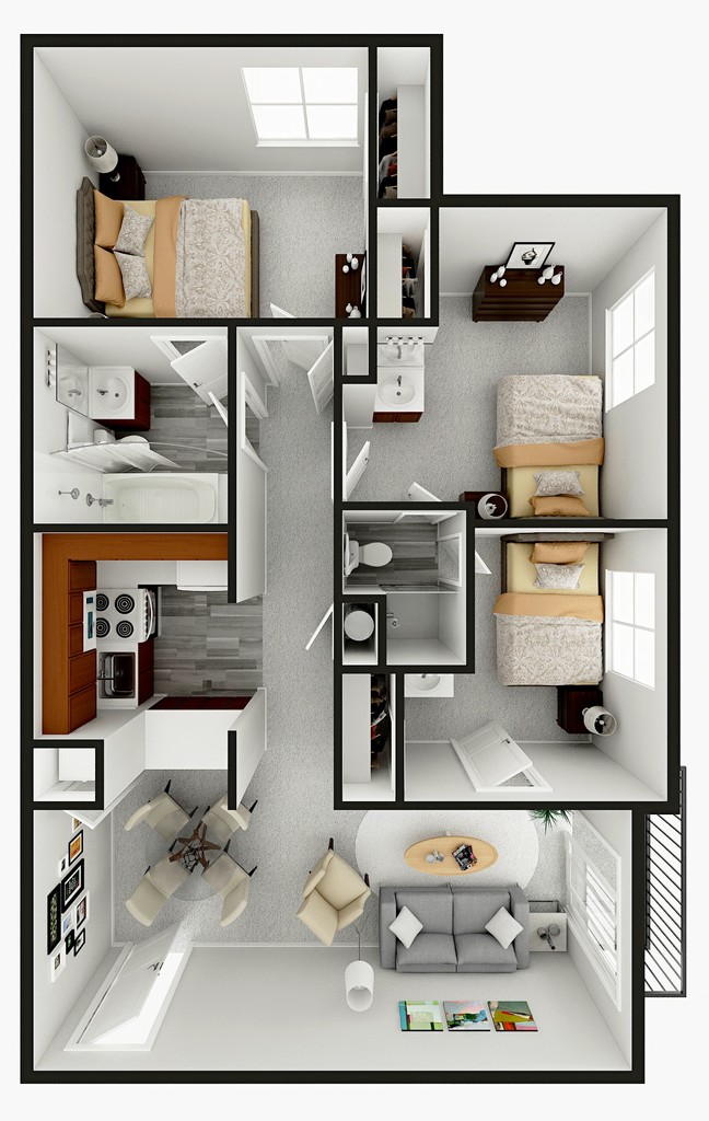 Apartment Model: 2 Bedroom w/ Study$1,2402 Bedroom, 2 Bath, 950 sq ftAvailable August 12, 2026FloorplansPhotos![]()