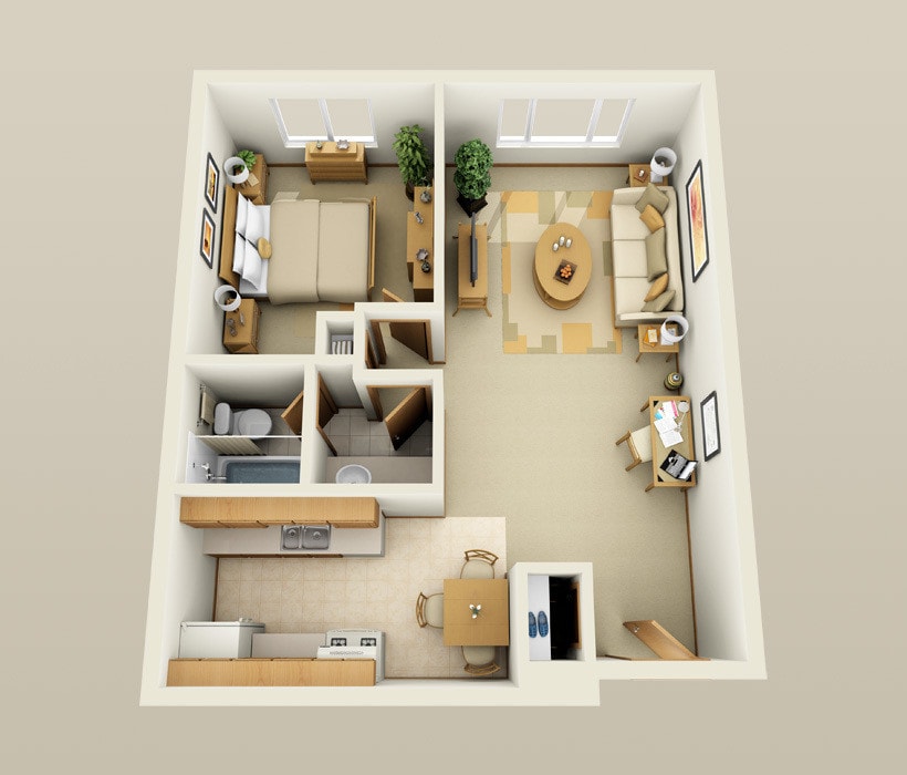 1 Bed, 1 Bath, 592 sq ftModel Gallery