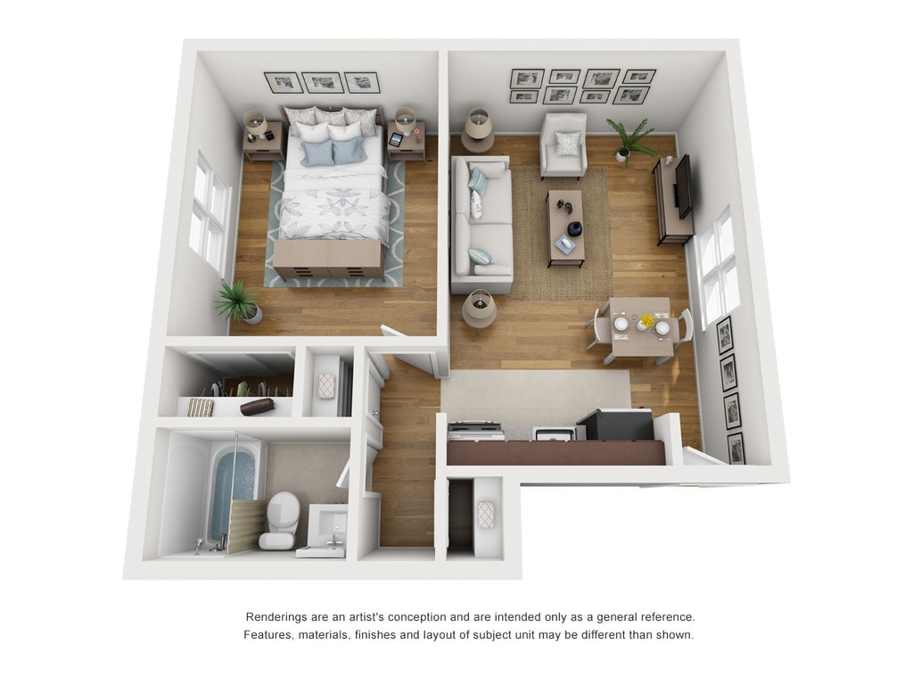 1 Bed, 1 Bath, 500 sq ftAvailable NowModel Gallery