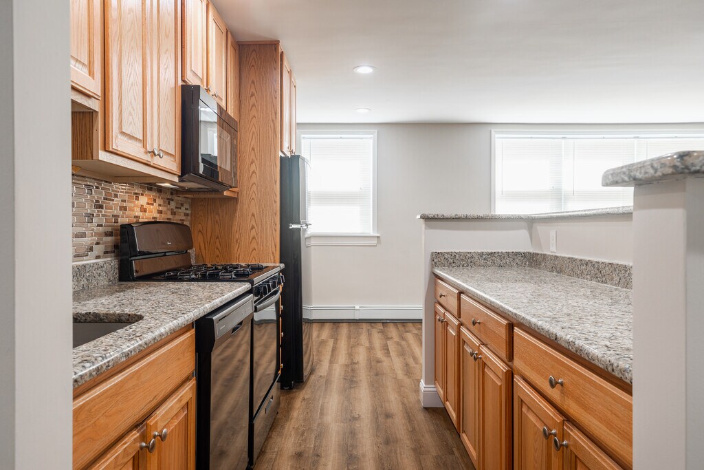 3 STORY GARDEN APARTMENT. ALL UNITS ARE REMODELED. NEW HARDWOOD FLOORS, NEW WINDOWS, NEW 6" WOOD MOLDINGS, NEW ELECTRIC OUTLETS, NEW INTERIOR DOORS, NEW BATHROOMS WITH CERAMIC TILE, NEW VANITY NEW MEDICINE CABINET. KITCHEN IS NEW WITH OAK CABINETS, NEW GRANITE COUNTERS, NEW KITCHEN ISLAND, BRAND NEW APPLIANCES WHICH INCLUDE A REFRIGERATOR, RANGE, MICROWAVE, DISHWASHER. ON SITE PARKING, LAUNDRY FACILITIES. ONE BLOCK TO TRAIN STATION TO NYC.